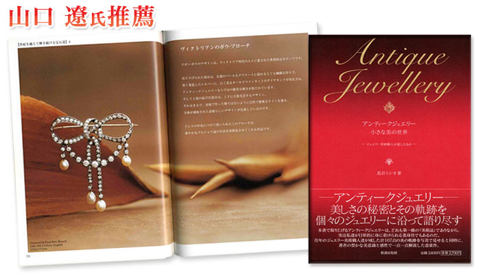 頗る感性豊かな若いアンティークジュエリー商の黒岩君が、これまでに扱った作品を写真と共に懇切な解説をつけてまとめたのが本書です。一人のジュエラーとして彼が歩んだ軌跡を辿ると同時に、個々のアンティークジュエリーのどこが優れているのかが、たちどころに判る見事な本になっています。